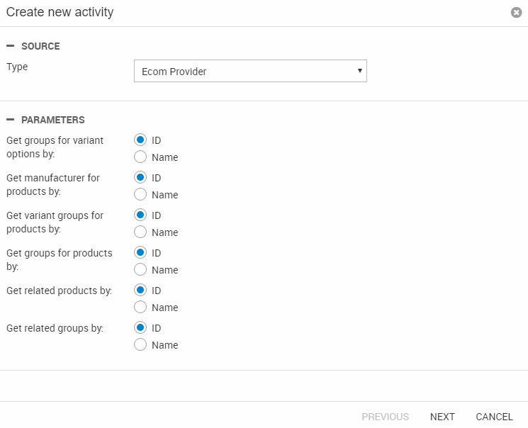 When used as a source provider, the Ecom Provider allows you to specify whether you want the ID or the Name of e.g. the manufacturer column to be exported (Figure 2.1).