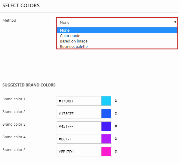 To generate brand colors (left side) you can choose between three different methods (Figure 2.1):