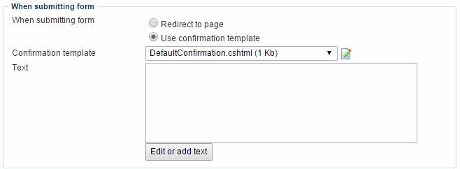 - Using a confirmation template on the same page, that will replace the form with the result of the form submit