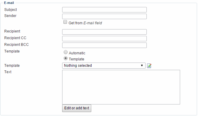 - Email template – controls the content in the form e-mail.