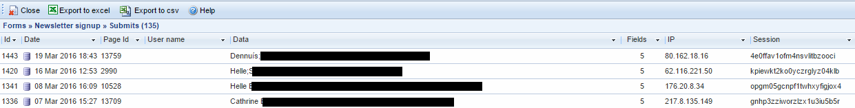 Once a form has been filled out and submitted, the data is stored in Dynamicweb. It can then be accessed and downloaded from the Dynamicweb backend.