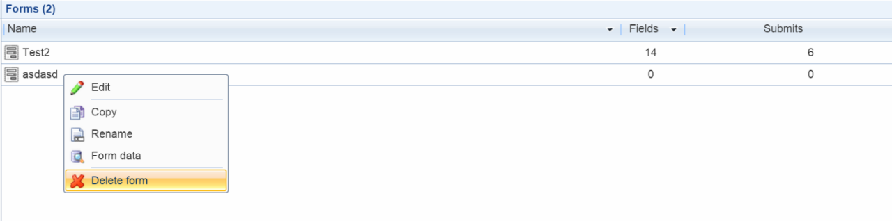 Right click a form to access the form actions (Figure 3.2).