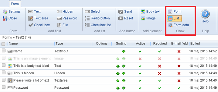 To access submitted form data, you can either right-click the form on the Forms for Editors form list and select Form data, or you can click Form data under the show settings (Figure 14.1) when editing a form.