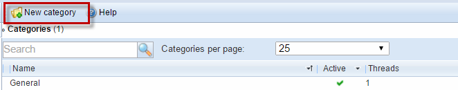 To create a new thread, either select a category and click New thread in the toolbar, or right click a category and select New thread from the right-click menu.
