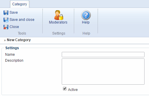 To create a new category, click New category in the forum content toolbar (Figure 12.1).