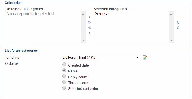 If you selected list forum categories in the display setting, you will have access to the category settings (Figure 5.1).