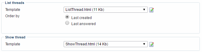 - Select a show thread template which controls how an individual thread with all replies is rendered
