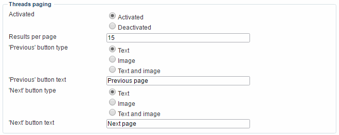 Unless your forum fails to engage your users, you will eventually end up with a lot of threads. To make things manageable, use the threads paging settings (Figure 6.2).