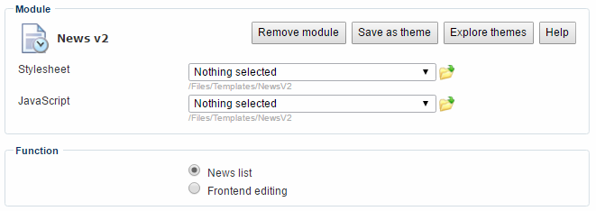 To access the advanced configuration options for the News module (Figure 15.1), go to Management Center > Control Panel > Modules and click on News v2.