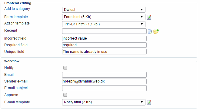 The workflow settings allow you to notify someone (an editor) every time an article is created from frontend. The approve checkbox lets the editor approve or discard a submission – a discarded submission is deleted.