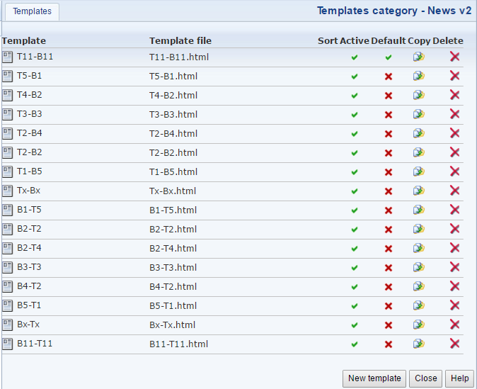 - View and edit existing templates – and copy, delete and activate/deactivate them