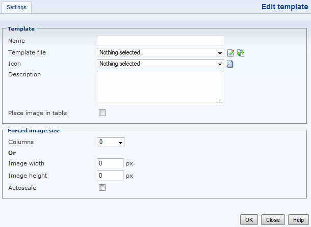 - Create a new template by clicking the New template button – this opens the edit template view (Figure 13.2)