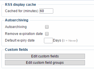 - Toggle and configure auto-archiving – check remove expiration date to be able to show an archive on the frontend, and set a default expiry date in days