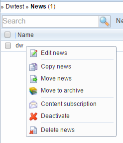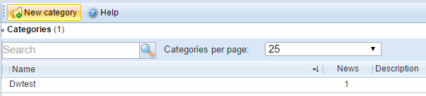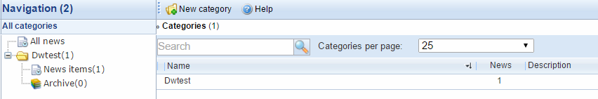 - The content panel on the right, where news articles under the selected category are listed – and can be created or edited