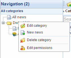 Right-click any category to open the context menu (Figure 3.2), from which you can edit or delete a category, create a news article, or edit the category permissions settings.