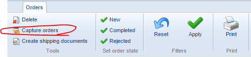 To capture one or more of these orders, select them from the order list (check their checkbox), and click the capture order(s) button in the toolbar (Figure 9.2).