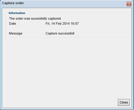 This opens a capture order window (Figure 9.3), from which you can capture the payment.