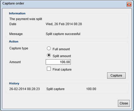 If your provider and card supports split capture, you can select split capture in the capture order window ({figureef}).