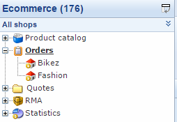 • Click it to open the order list view (Figure 3.2). The orders-node gives you access to all orders on the system – but you can click the shop icons located under the node to see orders from that shop only.