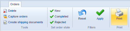 If you want to print one or more orders for offline use, simply select the order(s) and click the print button in the toolbar (Figure 6.1).