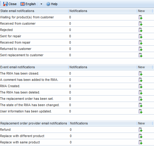 To create a new notification click on any state in the RMA email notification view to open the view in Figure 13.1.