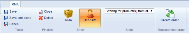 If you wish, you can click the user info button (Figure 7.1) in the toolbar to view and edit the extended information about the user who created the RMA.