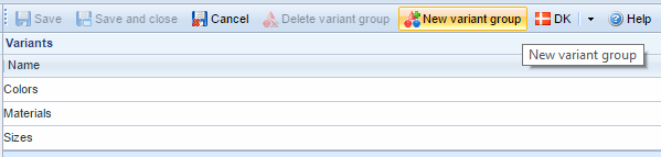 From the variant group view, you create and manage your variant group values – the actual variation values, like green, blue and or small, medium, large.