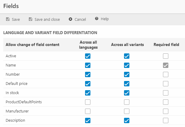 Figure 8.1 You can allow or disallow differentiated field content across variants from this configuration area