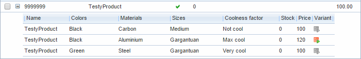 In the screenshot above, the price of a variant has been changed to 120, rather than the default 100 the original product was created with.