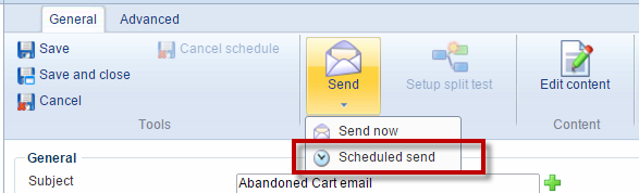When ready to schedule the campaign, click the Scheduled send button (Figure 6.1).
