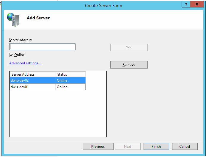 Create a Server Farm under the Server Farms node and add DW Server 1 and 2 as member servers (Figure 8.1).