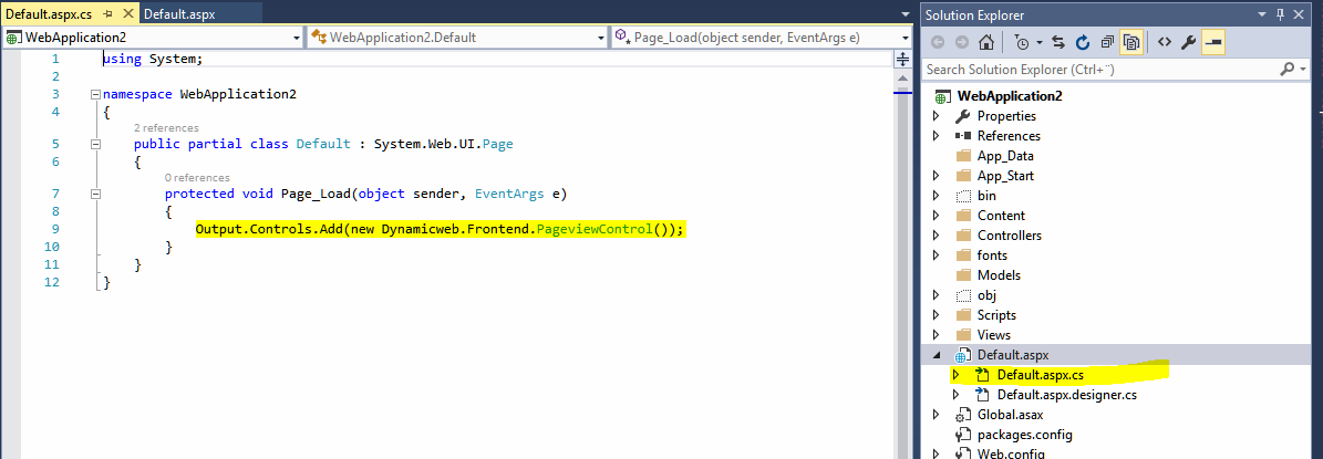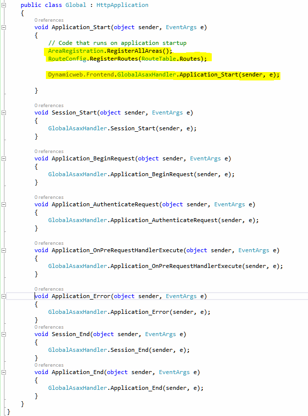 Next, make Global.asax call the Dynamicweb GlobalAsaxHandler.