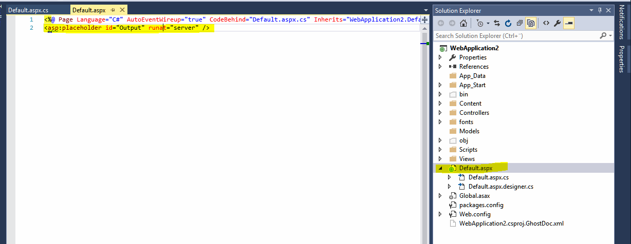 Figure 2.2 Empty project with Web Forms and MVC folder added