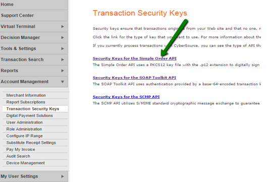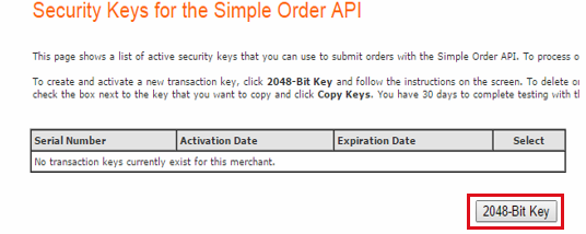 - Click “Security Keys for the Simple Order API” link (Figure 7.1)