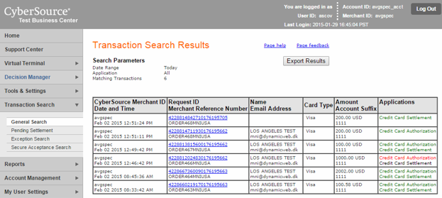- Log in to CyberSource Business Center with the merchant ID provided to you by CyberSource