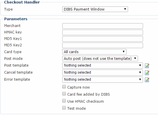 - Select the DIBS Payment Window checkout handler from the dropdown