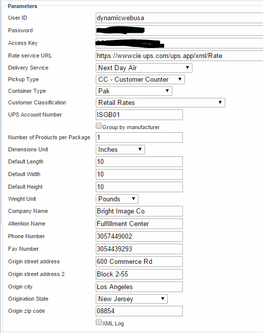 - Enter your User ID, Password and Access key – and customize the rate service URL if necessary