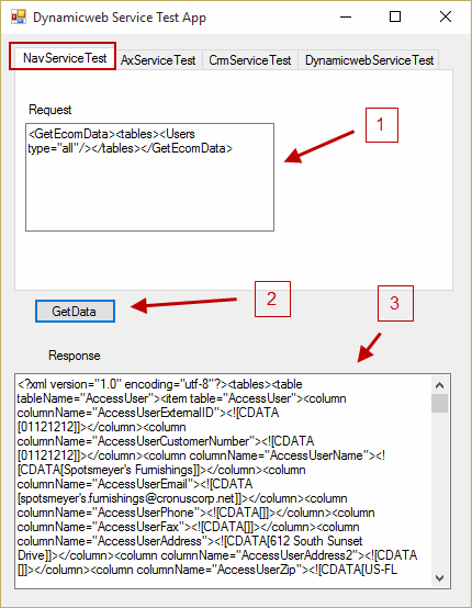 The Dynamicweb Service Test app (Figure 5.1) is a small tool for testing the web services exposed by the DynamicwebConnector, and by Microsoft NAV, AX and CRM when using the example plugins.