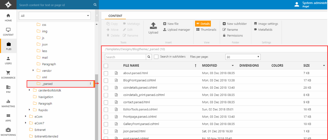 Layout templates are parsed whenever they are changed, and the parsed version of the template is placed in a subfolder called _parsed, with .parsed added to the file name (Figure 17.2.