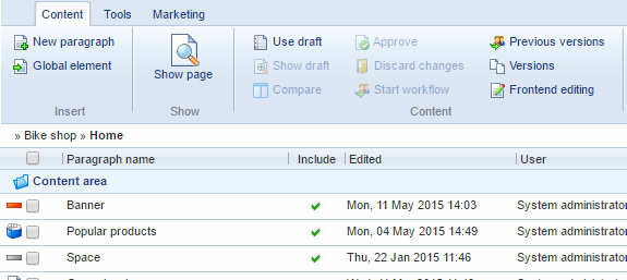 Once installed, a layout can be selected as the default template of a website, so that new pages created for that website will use it as the standard layout.