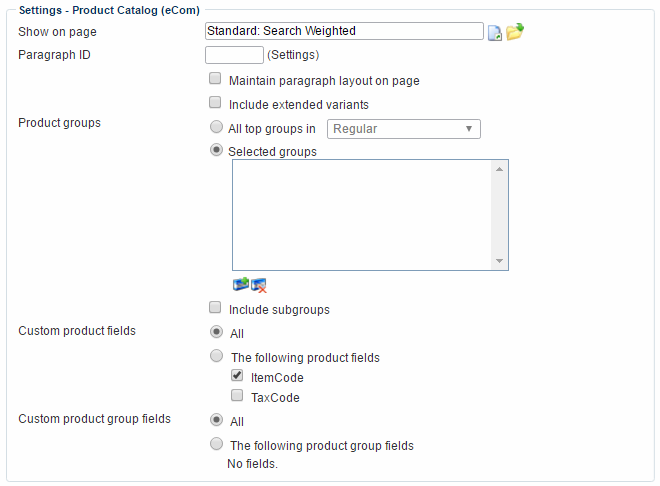 If your module is set to search in Ecommerce (e.g. product catalog), you can use the Product Catalog settings (Figure 8.1) to control the module behavior.
