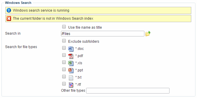 Once Microsoft Search Service is installed, you can use the Windows Search settings (Figure 9.1) to control the module behavior.