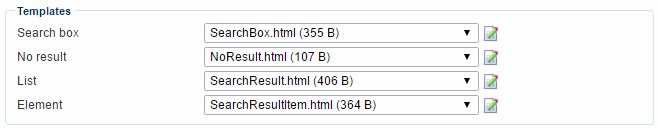 • The No result template, which controls the layout and style of the page shown when no results are found