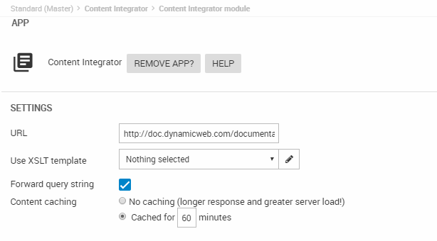 You can also enable and disable caching the content – the only reason to disable caching would be if your remote content is constantly updated, and you need the integrated content to be available in real time on your website.