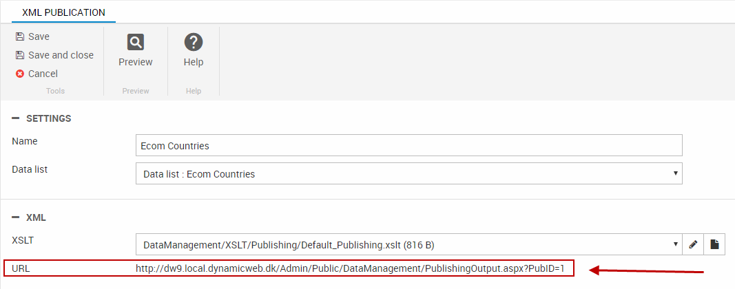 Once you save the publication, an URL will be generated (Figure 8.1) – visit this URL to view the XML feed.
