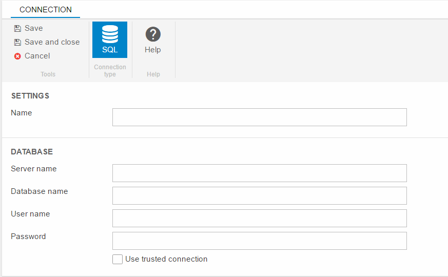 - Provide a user name and password for a user with access to the database – or check the Use trusted connection checkbox use windows authentication