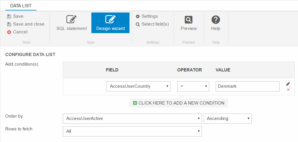 Together, Data Lists and Forms for Data Lists constitute a powerful framework for retrieving, publishing and creating data in Dynamicweb.