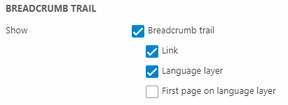 - Choose to include the language layer in the breadcrumb trial – optionally including the first page of the language layer