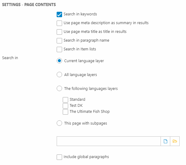 The Page Content settings (Figure 5.1) are used to control how to search in page and pararaph content.