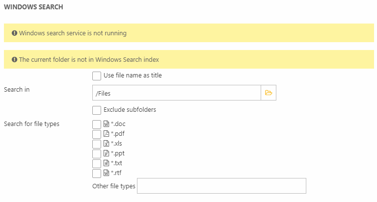 Once Microsoft Search Service is installed, you can use the Windows Search settings (Figure 8.1) to control the app behavior.